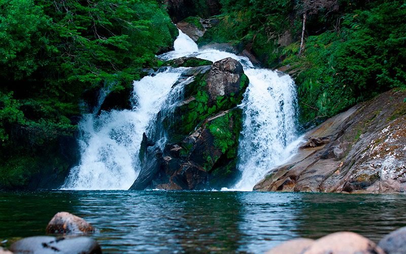 Esta excursión comienza a bordo de un vehículo todoterreno que nos llevará a conocer el fundo Rigi, Cascada de las Mellizas y Valle del río de Peulla. Nuestro vehículo nos dejará en la entrada del valle de Los Helechos desde donde comenzaremos una travesía de 1,2 kilómetros por un bello sendero rodeado de exuberante flora y fauna nativa. Finalmente nos espera majestuosa la cascada de los Helechos en donde podremos descansar, admirar el paisaje, tomar fotografías y refrescarnos con sus cristalinas aguas. Comenzaremos el retorno para disfrutar de un rico catering en el valle del Río Peulla, admirar el paisaje rodeado de grandes montañas pertenecientes a la Cordillera de los Andes para finalmente retornar a nuestro hotel.