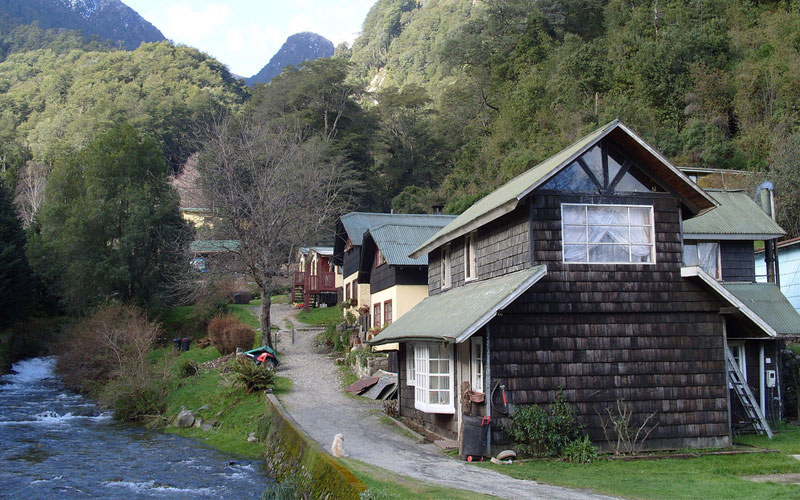 El sendero para llegar a la Cascada de los Novios es igual o más atractivo que la misma cascada. Parte en la Villa misma, pasa por afuera de casas con arquitectura típica de la zona, para después encontrarnos con 2 pequeñas turbinas que generan la energía para Villa Peulla (se puede ver cómo funcionan).