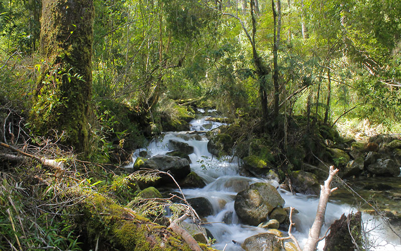 La segunda parte del sendero hacia la cascada va por todo el borde del “Arroyo Bruto” (rio que nace de la misma cascada) para finalmente cruzar un puente peatonal.